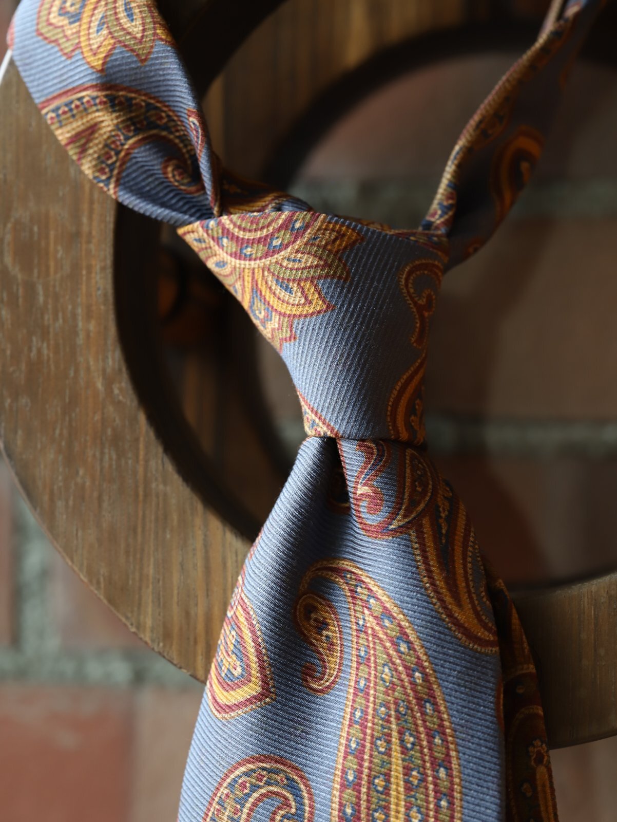 アットヴァンヌッチ (Atto VAnnucci)Frankシルク ブルー オレンジ系ペイズリー プリント オールシーズン アットヴァンヌッチは、伊フィレンツェのセブンフォールド社が生産するハンドメイドのネクタイです。 こちらは"Frank"(フランク )というモデルになります。薄手の芯を用いたベーシックなボトルシェイプタイプで、締め心地がよく美しいディンプルが作り易いのが特徴です。また、ノットが緩みにくく、シャツの第一ボタンを外して締めても左右の襟を引き寄せて保ってくれるという確りした一面も見せてくれます。拘りの生地も、COLの服にマッチするよう一本づつセレクト致しました。 ブルーベースにオレンジ系のペイズリー。何も言う必要がないほど主張してきます。 色も柄も唯一無二ではないでしょうか?作品のようなインパクトのある1本です。 Silk 100%長さ 148cm 大剣幅 9cm 小剣幅 4.5cm