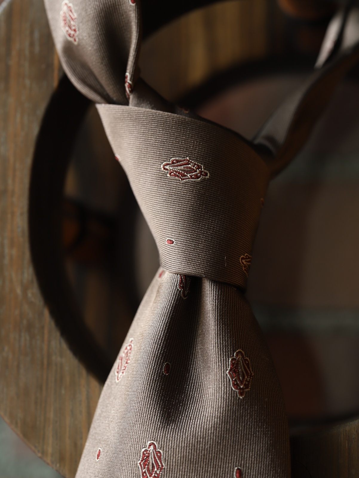 Atto Vannucci (アットヴァンヌッチ) シルク グレーイッシュブラウン エンジ小紋柄 ジャガード オールシーズン