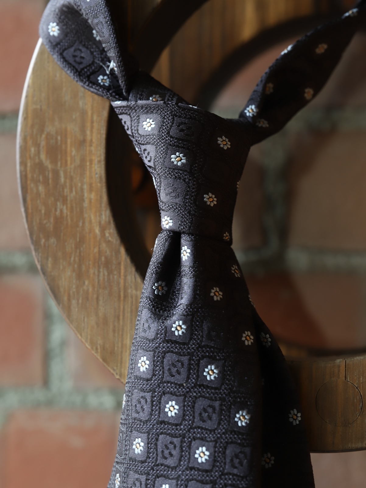 アットヴァンヌッチ (Atto VAnnucci)Frankシルク ダークネイビー 小紋柄 ジャガード オールシーズン アットヴァンヌッチは、伊フィレンツェのセブンフォールド社が生産するハンドメイドのネクタイです。 こちらは"Frank"(フランク )というモデルになります。薄手の芯を用いたベーシックなボトルシェイプタイプで、締め心地がよく美しいディンプルが作り易いのが特徴です。また、ノットが緩みにくく、シャツの第一ボタンを外して締めても左右の襟を引き寄せて保ってくれるという確りした一面も見せてくれます。拘りの生地も、COLの服にマッチするよう一本づつセレクト致しました。 ダークネイビーベースに小紋柄。複雑な柄の上に配置された小紋が高級感を感じさせます。色合いも落ち着いており、大人っぽい印象を引き出すのに良さそうです。 Silk 100%長さ 148cm 大剣幅 9cm 小剣幅 4.5cm