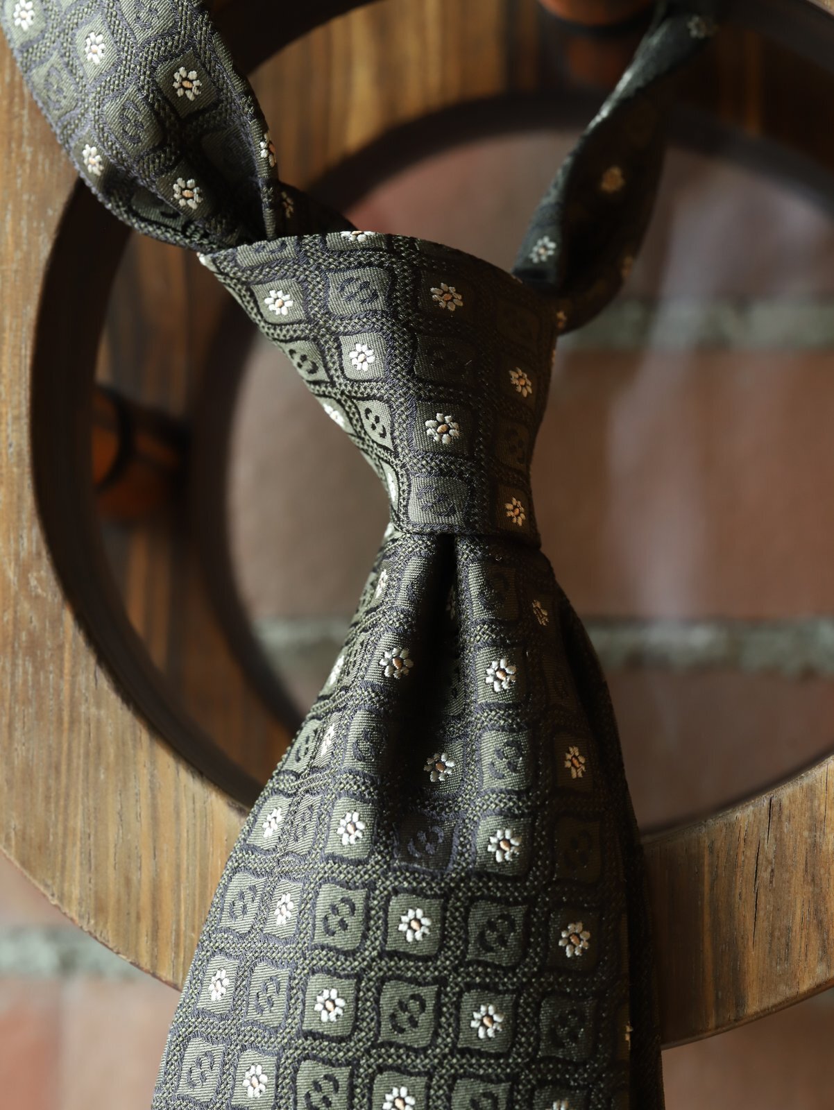 Atto Vannucci (アットヴァンヌッチ) シルク ダークグリーン 小紋柄 ジャガード オールシーズン
