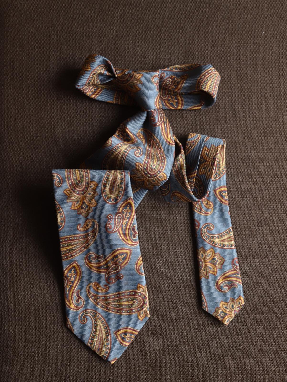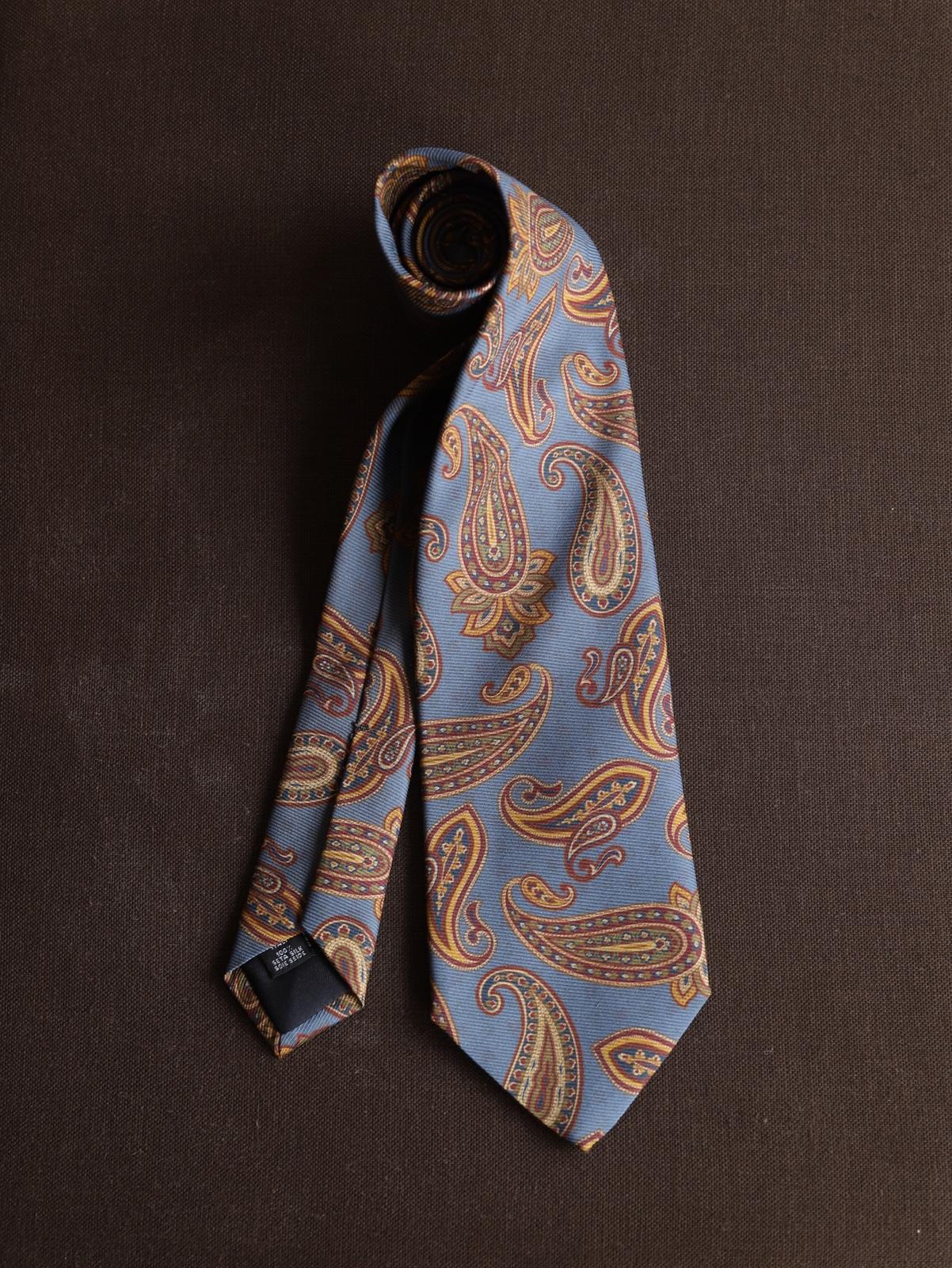 ホーム | ネクタイ > アットヴァンヌッチAtto Vannucci (アットヴァンヌッチ)  シルク ブルー オレンジ系ペイズリー プリント オールシーズン